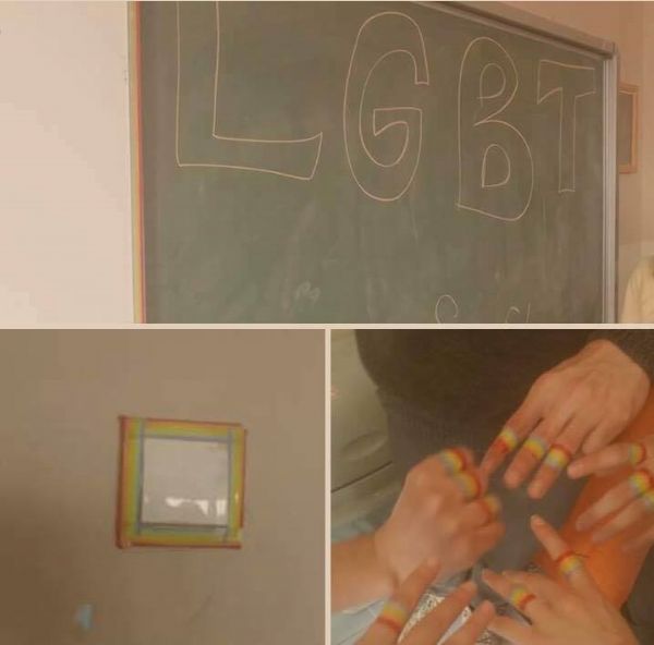 konya’daki bir lisenin öğrencileri dışlanan ve baskı gören eşcinsel arkadaşlarına duygulandıran bir destek verdi. İsmi verilmeyen lisede yaşanan olayda, sınıf arkadaşları dışlanan eşcinsel arkadaşlarına destek vermek için sınıflarındaki tahtaya lgbt yazdı ve parmaklarını gökkuşağı renklerine boya..