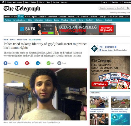 İngiliz daily telegraph'ın haberine göre İngiltere'de polis ve savcılar bir eşcinsel işİd davası sanığının mahkemeye kimliğinin gizlenmesi için başvurdu. zira işİd, eşcinsellere yönelik vahşi uygulamalarıyla biliniyor. gazetede tom whitehead imzasıyla yer alan haberde İngiliz polisinin işİd davas..
